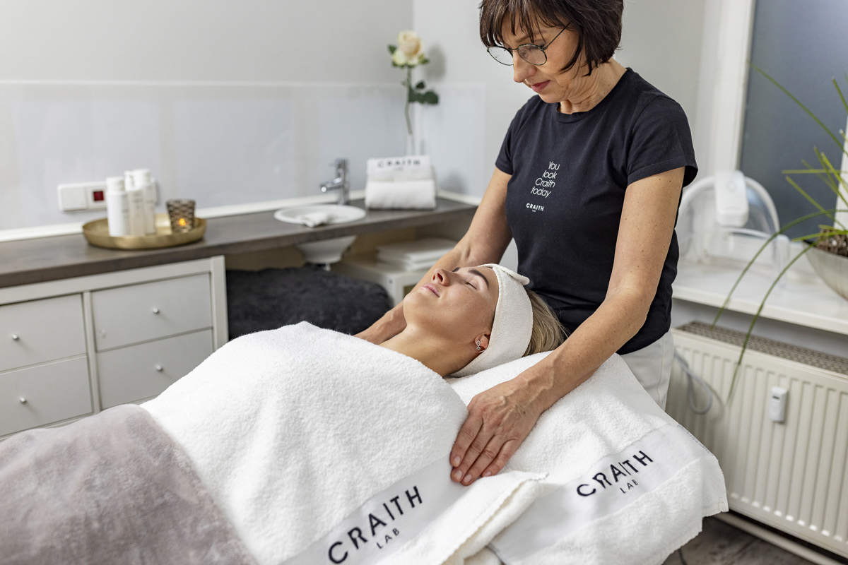 Das Herzstück unserer Zusammenarbeit waren die „In-Action“-Aufnahmen. Diese Bilder zeigen die Kosmetikerin Marion Wegner direkt während der Behandlung und sind ein essenzieller Bestandteil moderner Business Fotografie.
