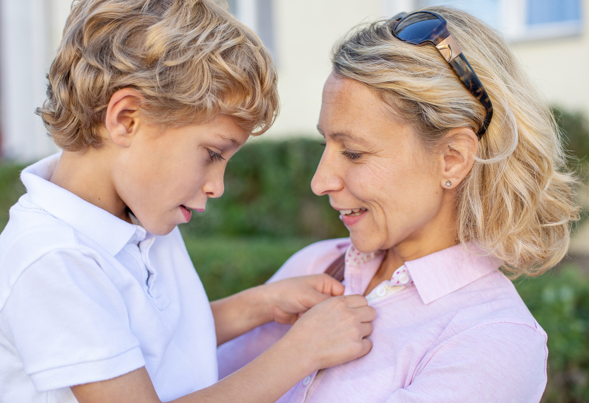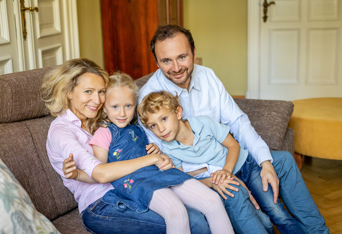 Ich hol die Kids auf meine Seite – wir „verschwören“ uns gegen die Eltern, aber natürlich nur mit ganz viel Spaß. Fies werden ist Out. Wir machen lustige Sachen, wie Eltern erschrecken oder mit dem Mund in ihren Hals pupsen. Das kitzelt schön. Das sind die schönsten Kinderfotos.